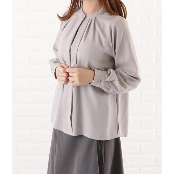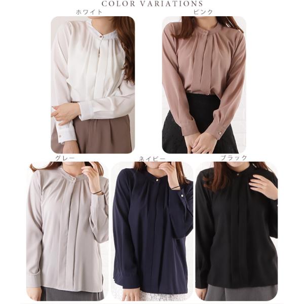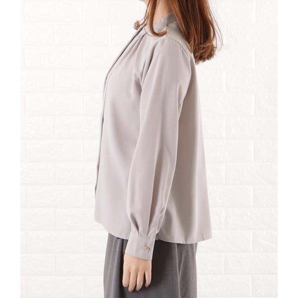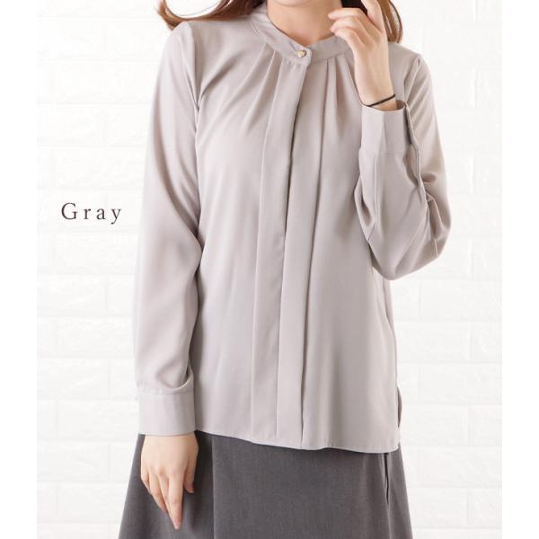 フロントタック ブラウス レディース オフィス カジュアル 春 夏 長袖 お呼ばれ 通勤 OL きれいめ 華奢 ブラック 黒 グレー