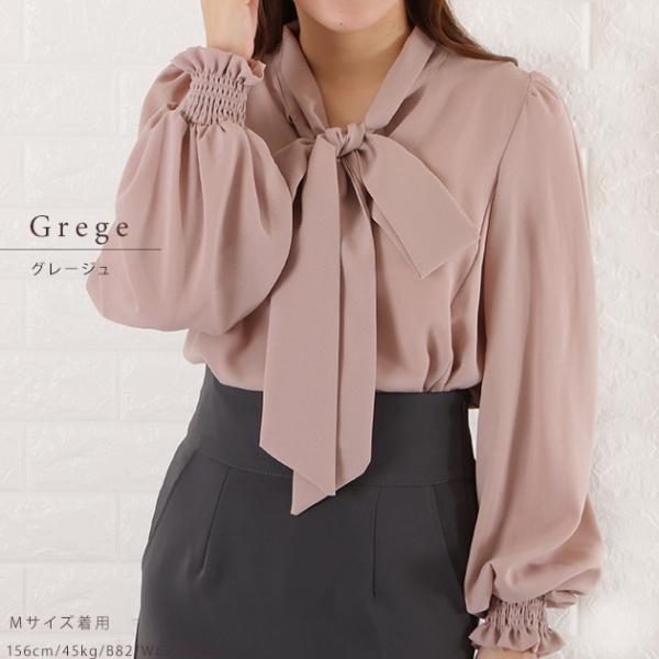 ボリューム袖 ボウタイ ブラウス レディース トップス 長袖 キャンディースリーブ Vネック 無地 シフォン リボン 秋 冬 春 フェミニン
