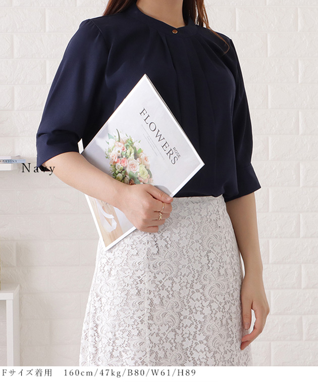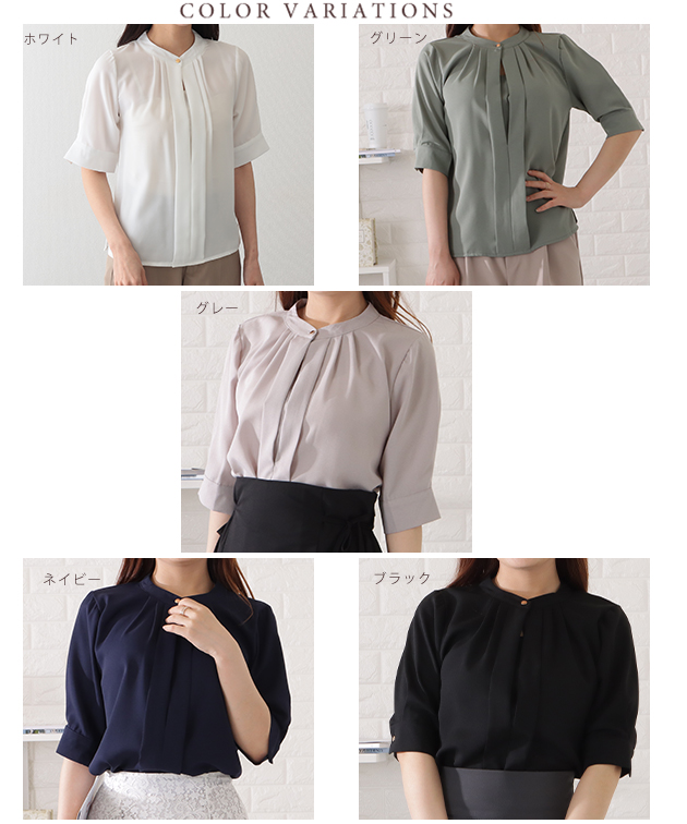 2WAYネック半袖タックブラウス 女性 レディース トップス プルオーバー ゴールド メタリックカラー ボタン シフォン 上品 エレガントフェミニン