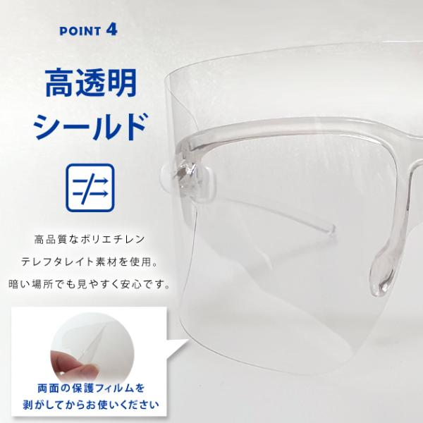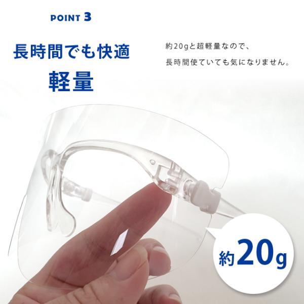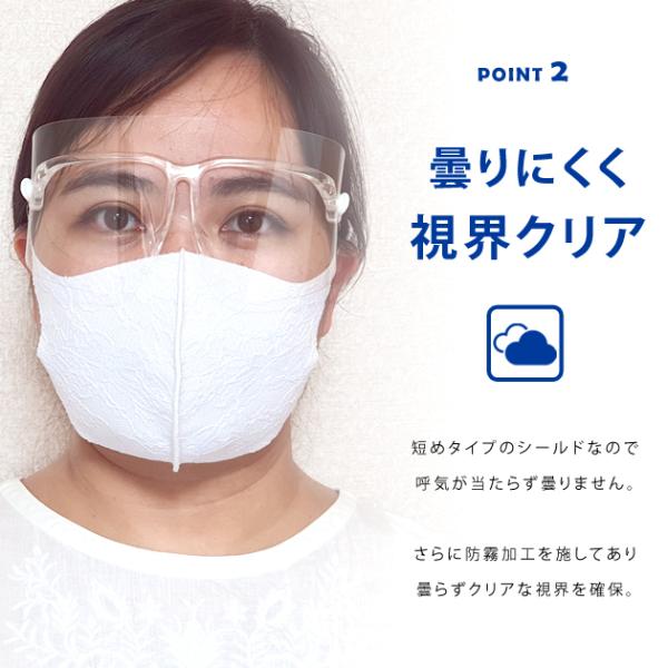 飛沫から目を保護する短めタイプのフェイスシールドです。