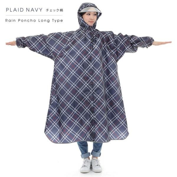 薄型 軽量 自転車 レインコート 大きいつば 袖付き レインポンチョ フリーサイズ 男女兼用 前開きジッパー ポンチョ 袖あり チェック柄 ドット柄