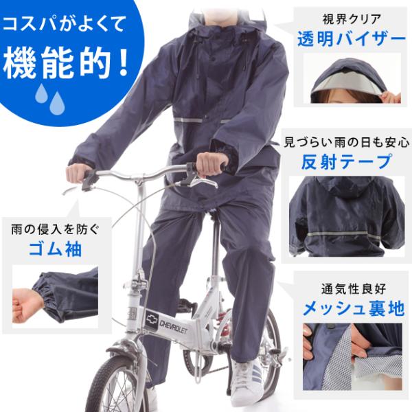 上下セット レインコート 軽量 自転車 男女兼用 ツバ付き 反射テープ付き レインウェア 撥水 袖あり メンズ レディース 長袖 長ズボン