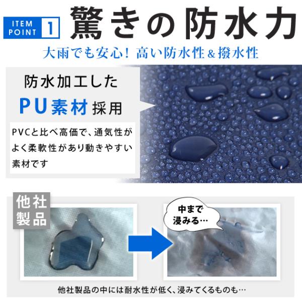 ポリエステル50%、ポリウレタン(PU)50%、PU防水コーティング有