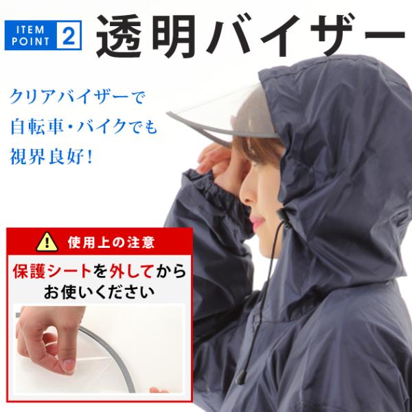 バイザー取り外し可 レインコート 軽量 自転車 袖付き レインウェア 袖あり 防水 軽い ママ 送迎 通勤 通学 カッパ おしゃれ ロング丈