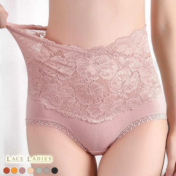 ハイウエスト レースショーツ 単品 パンティー 綿 コットン ブラック グレー テラコッタ レディース オシャレ 下着 ショーツ 股上深め