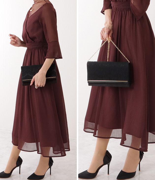 花柄レース プリーツ ロングドレス ブラック ネイビー ブルーグレー 結婚式 披露宴 二次会 お呼ばれ 演奏会 フォーマル パーティ ゆったり