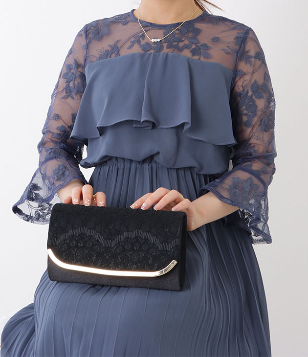 メタリック エッジ レース パーティー バッグ 女性 レディース ハンド クラッチ ポーチ 刺繍 結婚式 成人式 ハレの日 セレモニー フォ