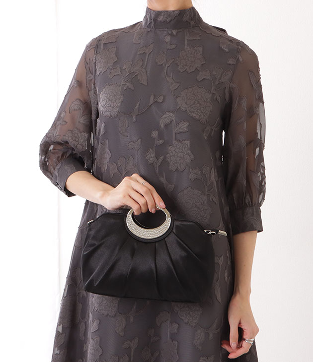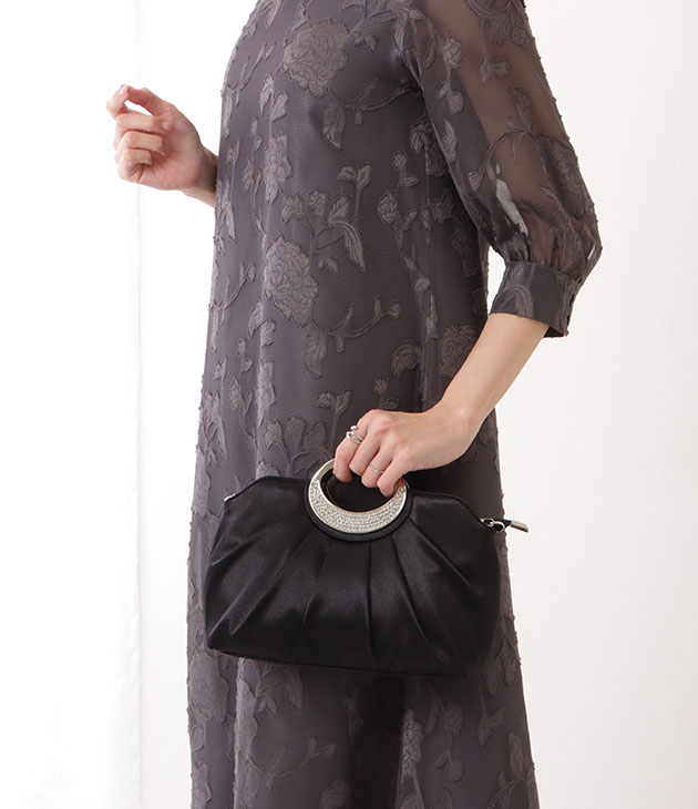 ビジュー付き メタリック ハンドル ハンド バッグ 女性 レディース ポーチ クラッチ 刺繍 結婚式 パーティー 成人式 ハレの日 セレモニ