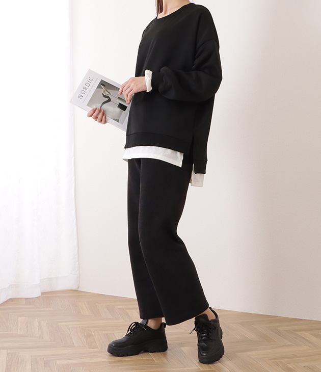 裏起毛ハイウエストイージーパンツ 女性 レディース ボトム ズボン 暖パン ラフ 秋 冬 ウィンター 防寒 ウォーミー 寒さ対策 ボア 厚手
