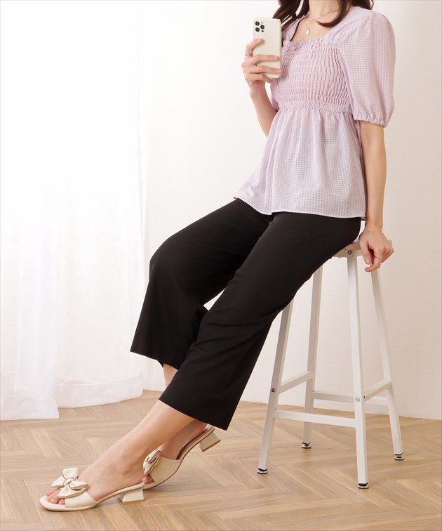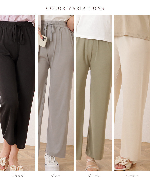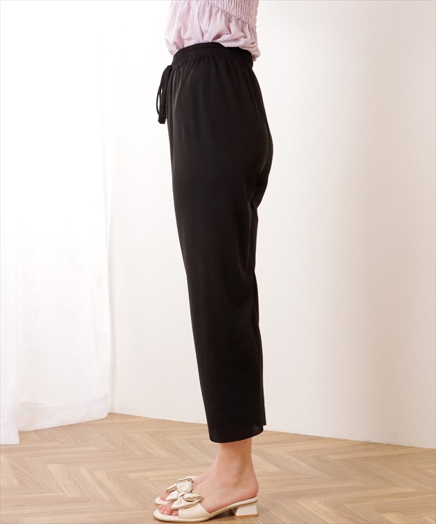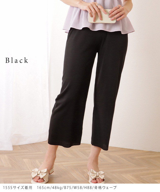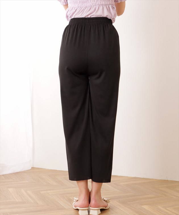 ウエスト イージー 9分丈 リブ ワイド パンツ 女性 レディース ズボン ボトム 夏 薄手 リラクシー ゆったり 脚長効果 スタイルアップ