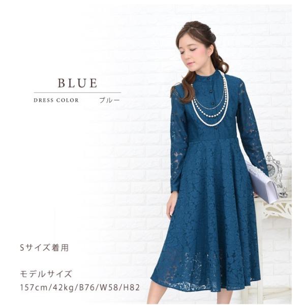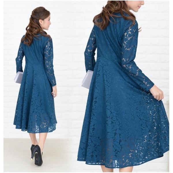 総レースワンピース パーティードレス ミモレ丈 レディース 長袖 結婚式 二次会 お呼ばれ 同窓会 発表会 入園式 ドレス