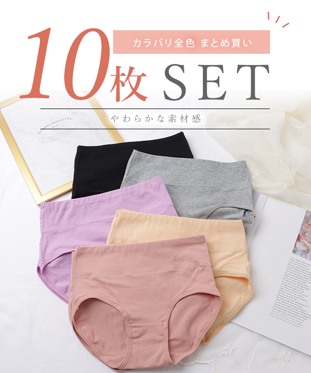 【10枚セット】ハイウエスト ベーシック コットン ショーツ 女性 レディース 下着 肌着 インナー 春 夏 秋 冬 オールシーズン 綿 デ