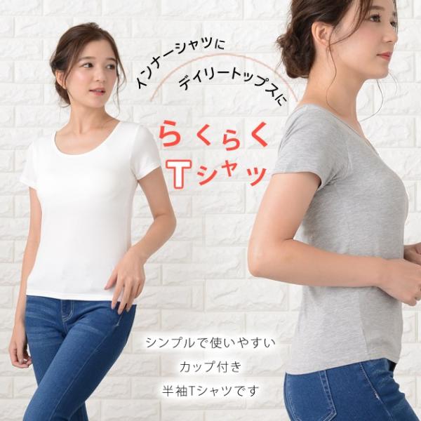 カップ付き 半袖 Tシャツ トップス レディース 大きいサイズ インナー 下着 ブラトップ 無地 速乾 ストレッチ 伸縮性 通気性 締め付けない