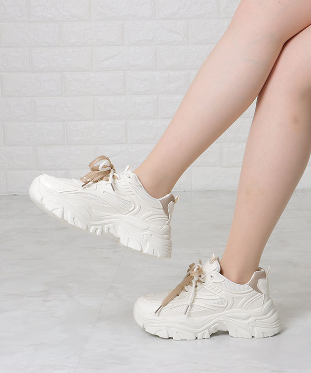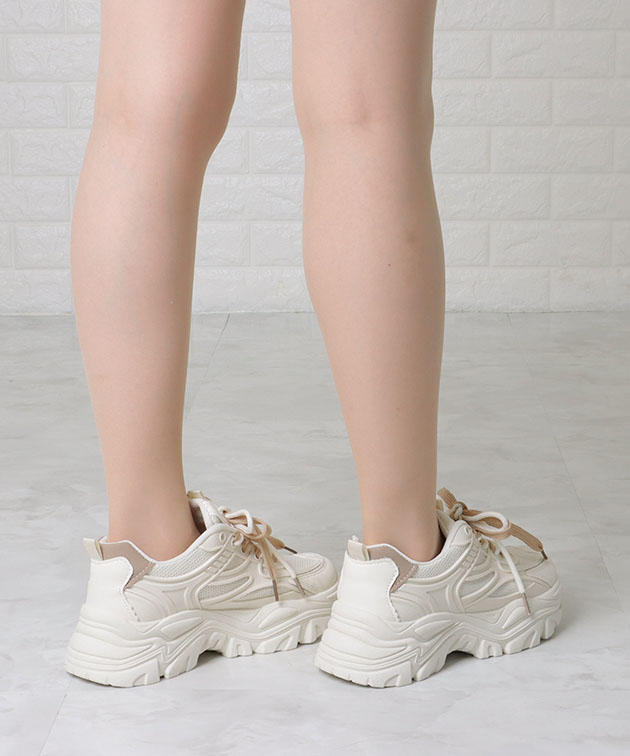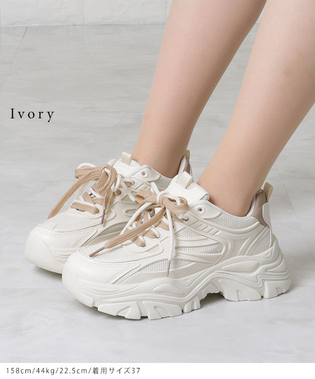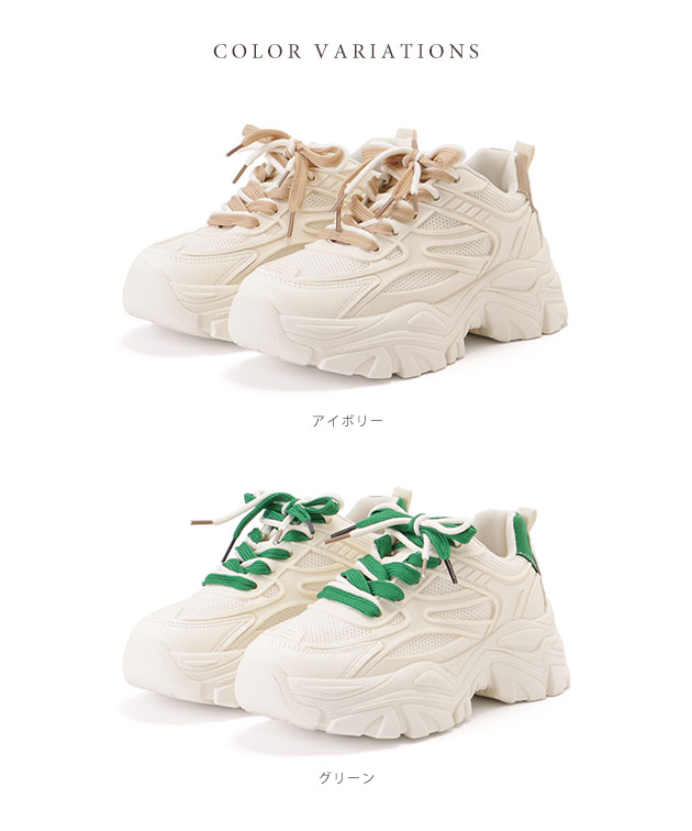 シューレース付き メッシュ ドッキング 厚底 スニーカー 女性 レディース 靴 アグリーシューズ 春 夏 秋 冬 異素材 ダッドシューズ カ