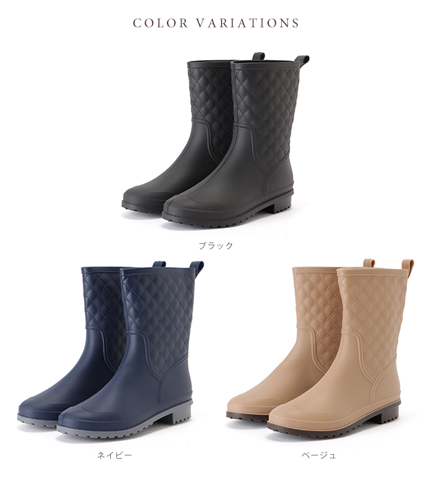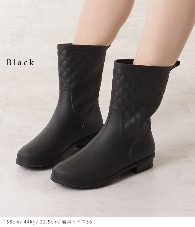 キルティングデザインショートレインブーツ 女性 レディース 長靴 雨靴 雨具 シューズ ミドル丈 アウトドア キャンプ 梅雨 台風 雨晴兼用