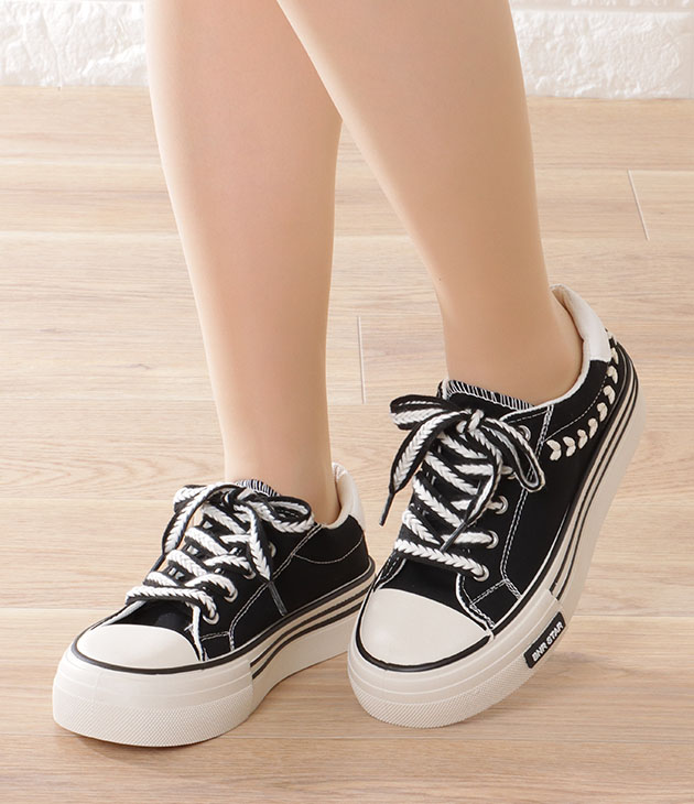 ダブルストラップ 配色 キャンバス ローカット スニーカー レディース 女性 紐靴 シューズ 春 夏 秋 冬 オールシーズン 厚底 凹凸 カ