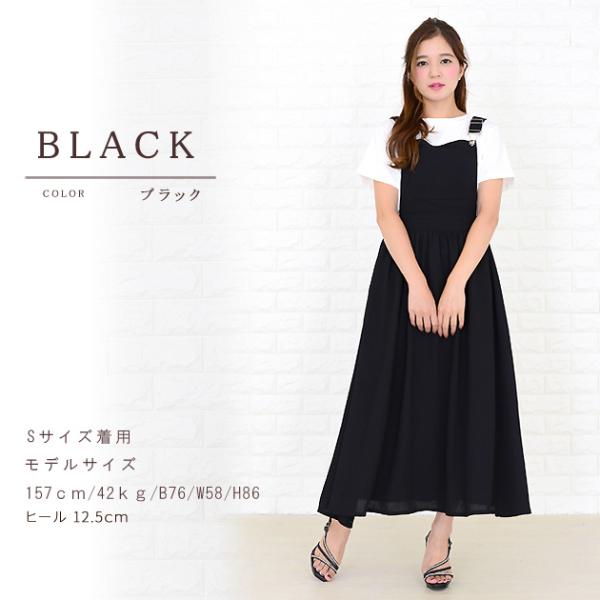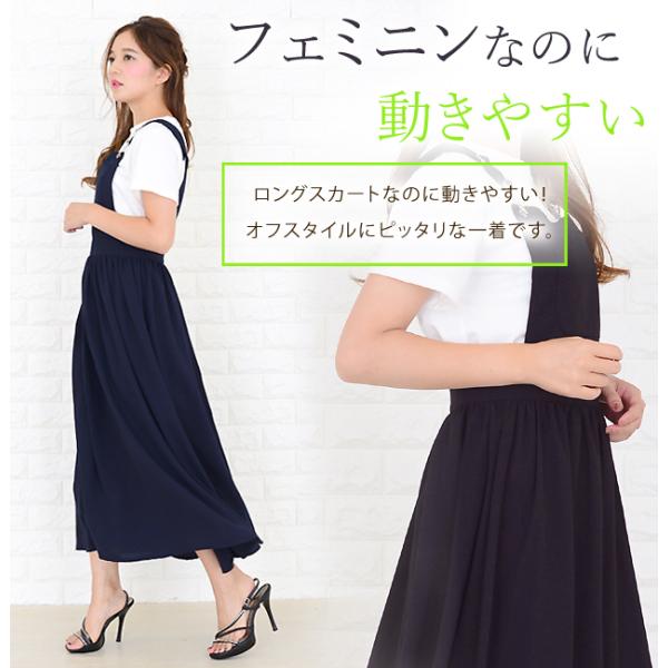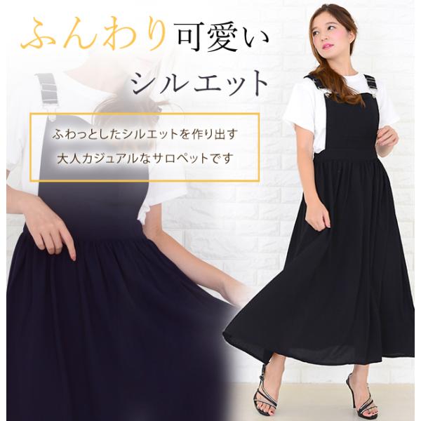 ふんわり ジャンパースカート サロペット サロペワンピワンピース カジュアル ブラック ネイビー ロングスカート 着回し抜群 かわいい