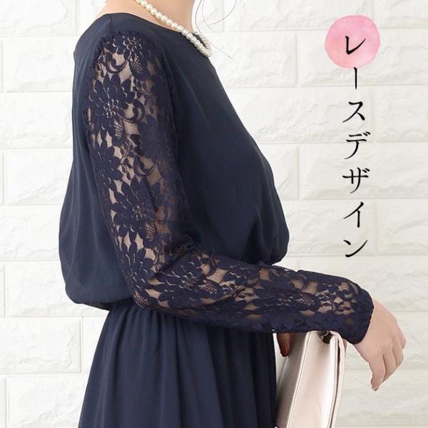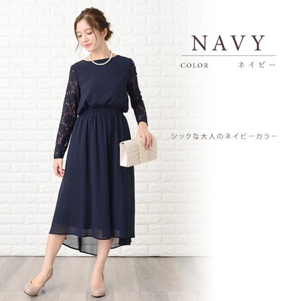 フィッシュテール 長袖レース ワンピース ロングワンピース ロング丈 ミモレ丈、パーティードレス、シフォン レディース袖ありウエストゴム