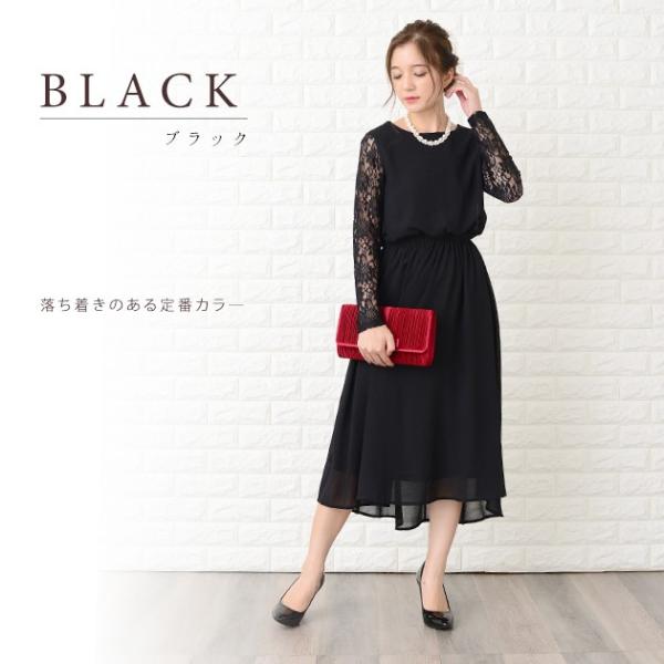レース袖 膝丈 パーティードレス S-XL ブラック ワンピース 結婚式 披露宴 お呼ばれ 5分袖 コクーン 美ライン フォーマル 上品