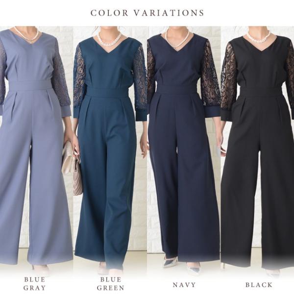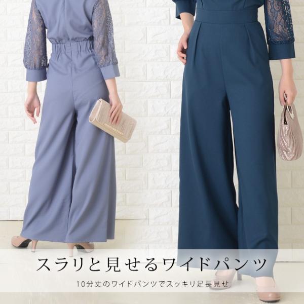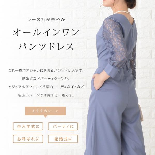 パンツドレス パーティードレス オールインワン サロペット ドレス ワイドパンツ レディース コンビネゾン 袖あり 7分袖 結婚式