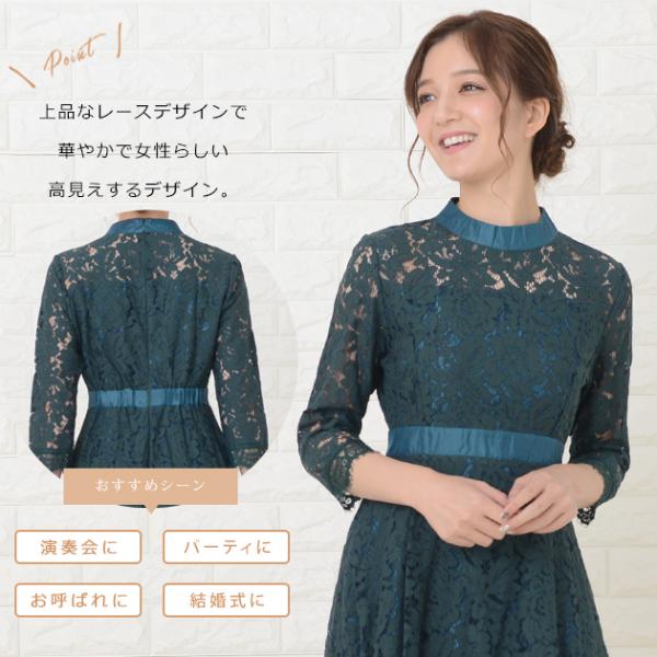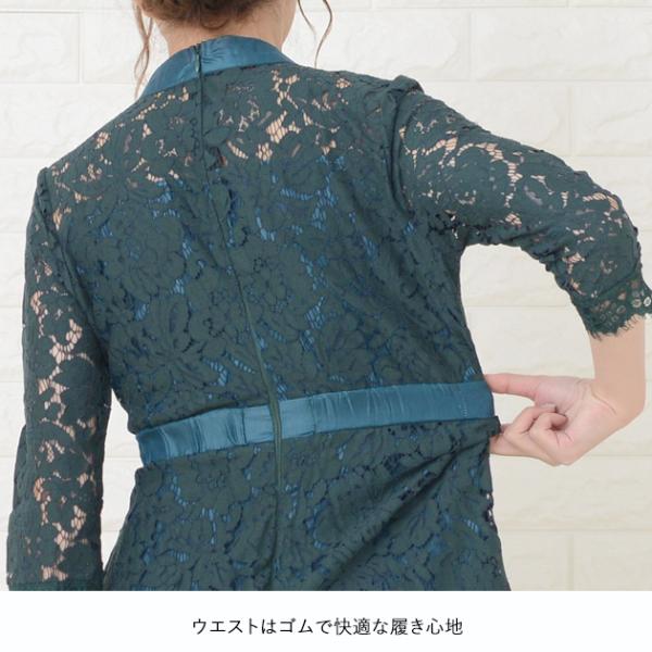 フィッシュテール ハイネック ロング丈ワンピース パーティードレス フォーマル ロングドレス レース袖 七分袖 袖あり パーティドレス