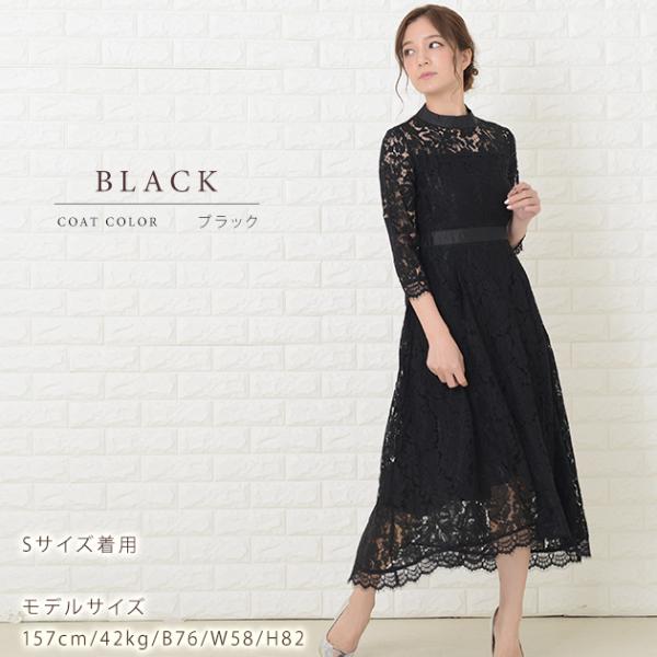 レース袖 膝丈 パーティードレス S-XL ブラック ワンピース 結婚式 披露宴 お呼ばれ 5分袖 コクーン 美ライン フォーマル 上品