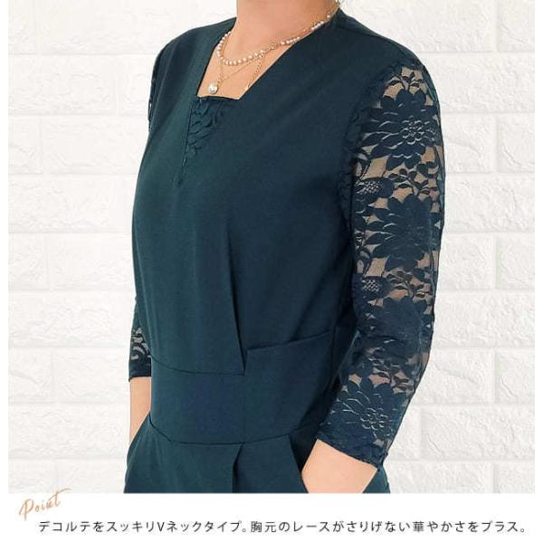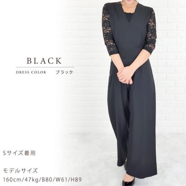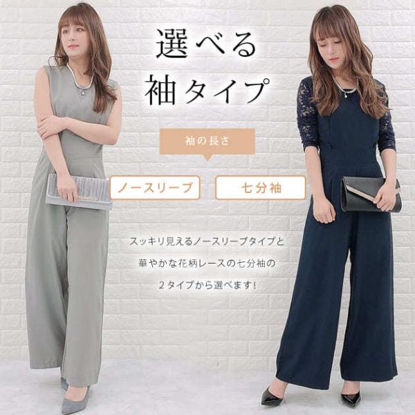 選べる袖丈2タイプ Vネック オールインワン・パンツドレス ブラック ネイビー グリーン グレー ブルーグレー ロング丈 パーティードレス