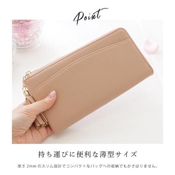 レザー調タッセル付きハーフジップウォレット レディース 長財布 スマート スリム 薄型 ファスナー L字 クラッチバッグ 収納 カードケース