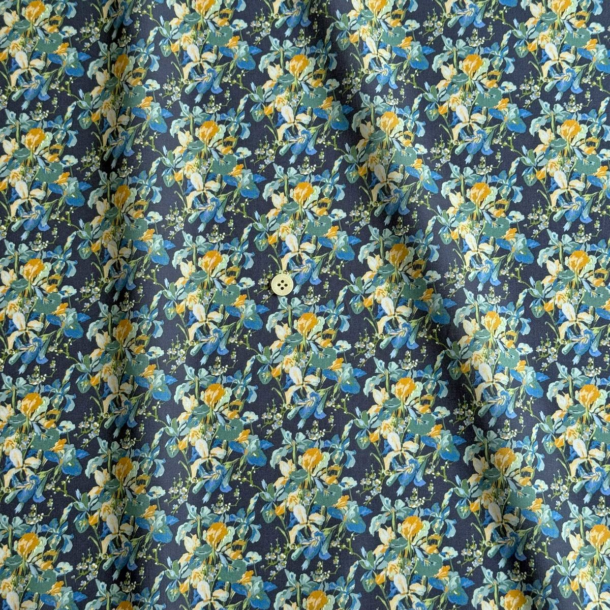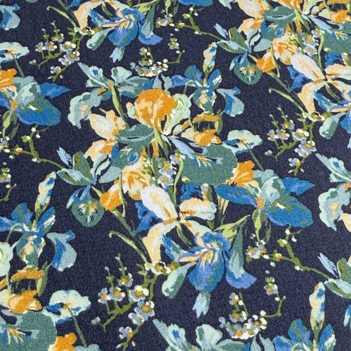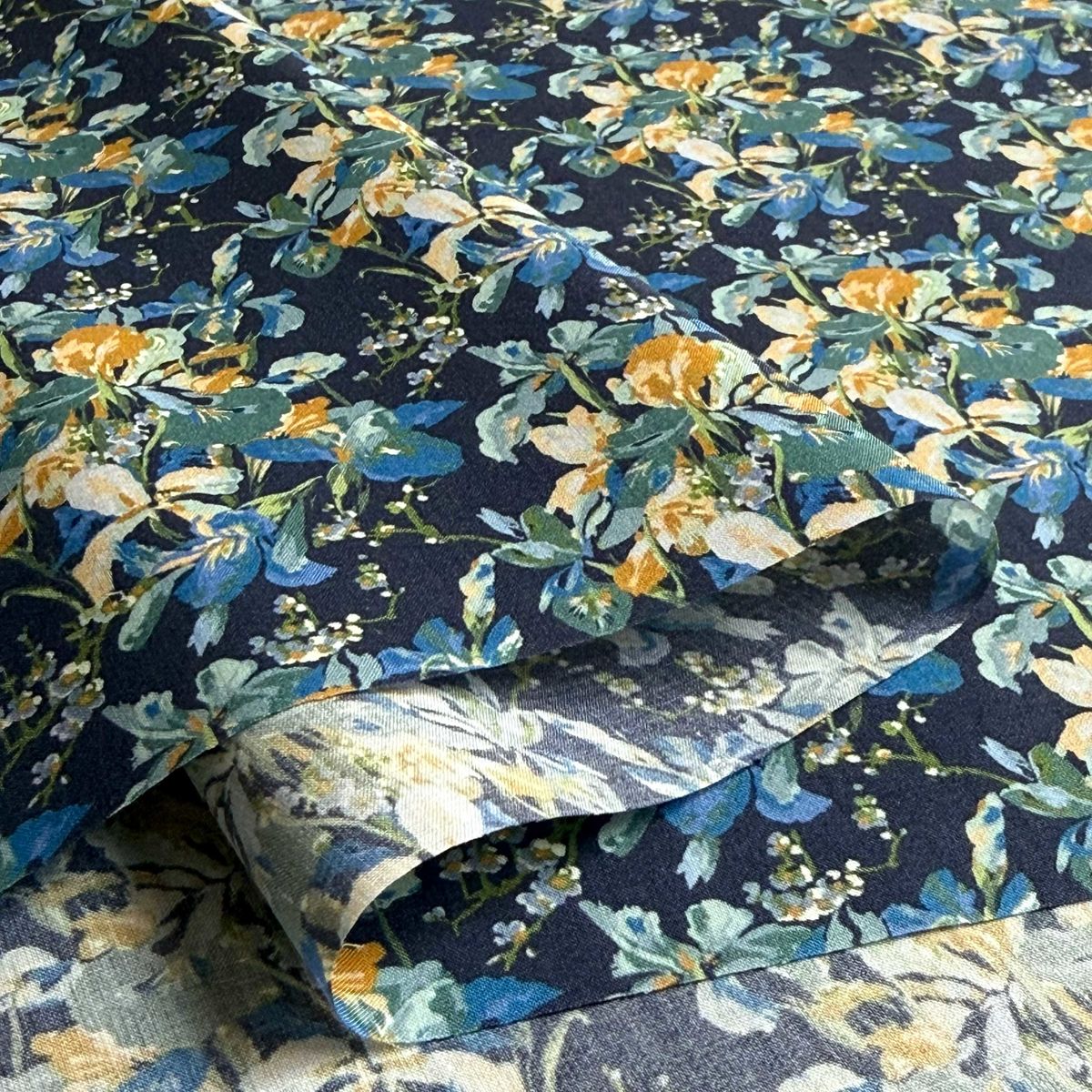 LIBERTY FABRICS リバティプリント イタリア製オーガニックタナローン生地<Belsay Garden>(ベルセイ・ガーデン)【ネイビー×イエロー】157J75909-26DU