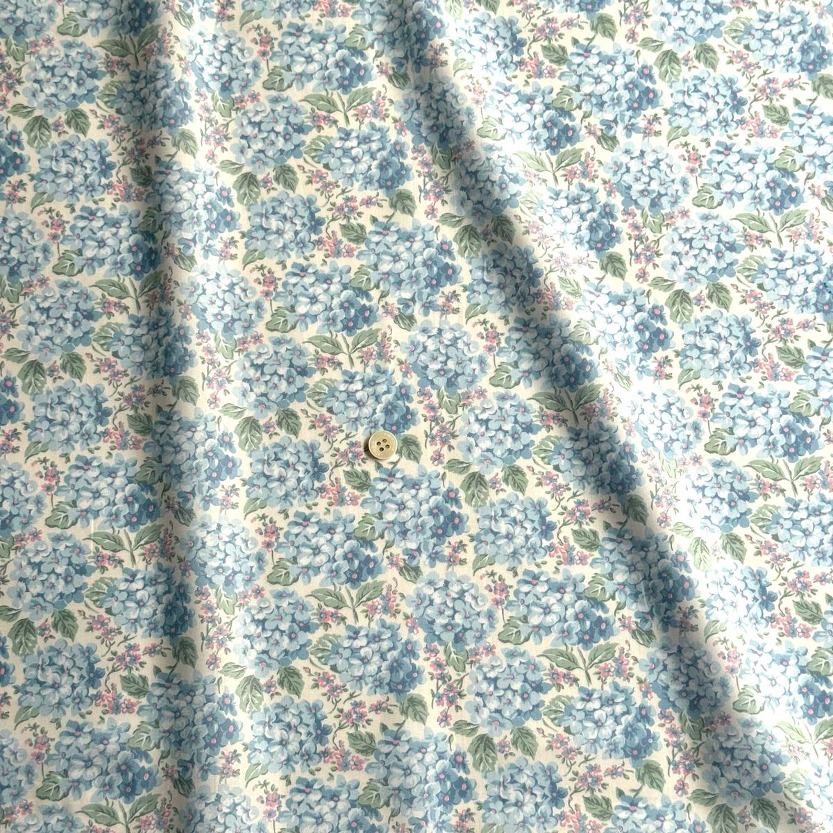 LIBERTY FABRICS リバティプリント イタリア製オーガニックタナローン生地<Hampshire Hydrangea>(ハンプシャー・ハイドランジア)【ブルー花×クリーム地】