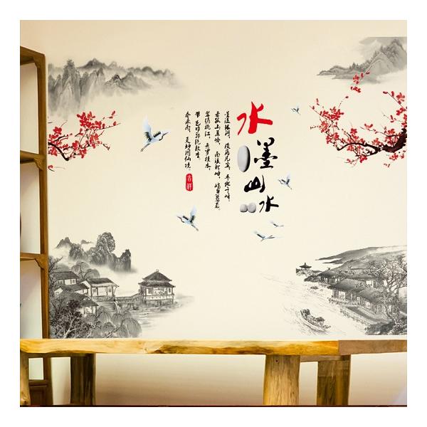 ウォールステッカー 大きな木 小さい 3本 花 蝶 ナチュラル 壁紙シール ポスター 緑 草原 はがせる 木目 穴隠し vinyl 材質