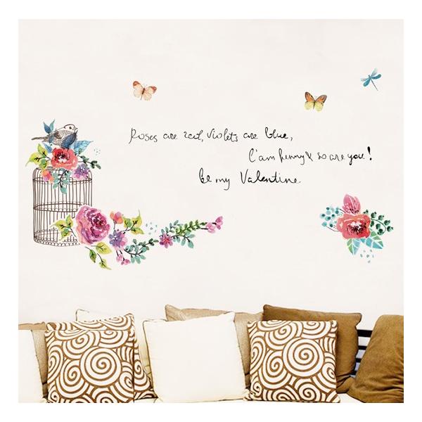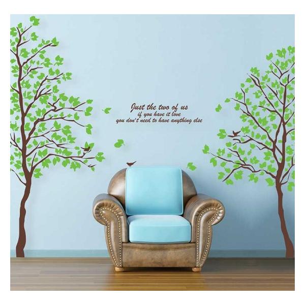 ウォールステッカー 大きい グリーンリーフの木と小鳥 はがせる 壁紙シール シンプル ツリー 外の景色 葉っぱ 枝 英字 リビング ソファー