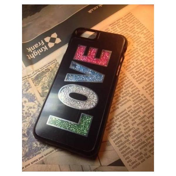 iPhone 6plus きらきらビーズ ハードカバー 可愛い ハート 黒色 ポリカーボネート アイフォンカバー