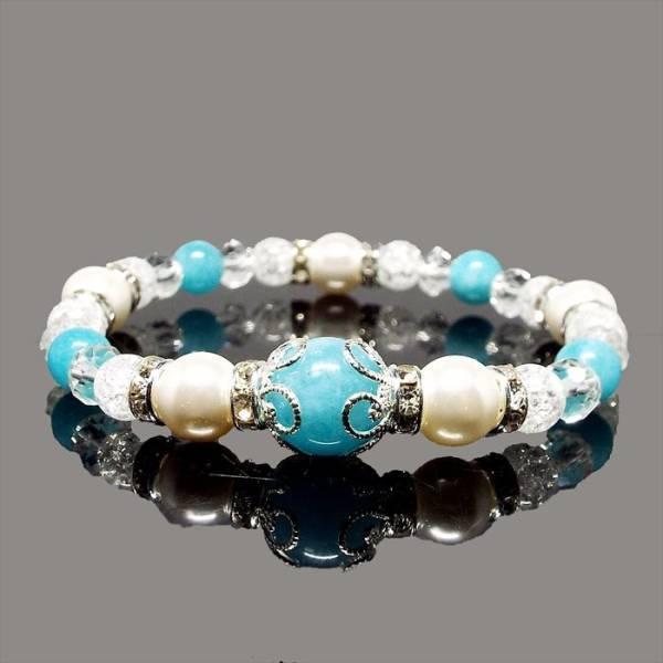天然石 ブルークォーツ クラック水晶 シェルパール パワーストーンブレスレット 癒し