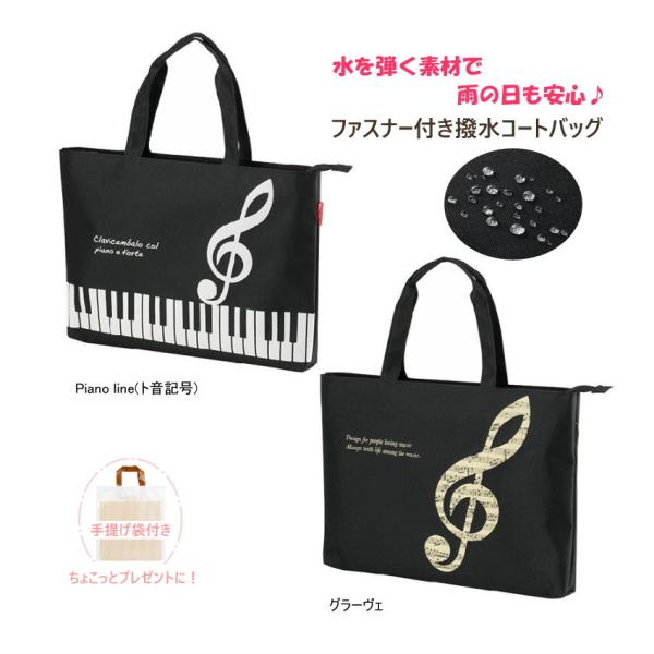 撥水バッグ 撥水コートバッグ トートバッグ ファスナー付き 雨の日も安心 お道具袋 レッスンバッグ ピアノ教室 発表会景品