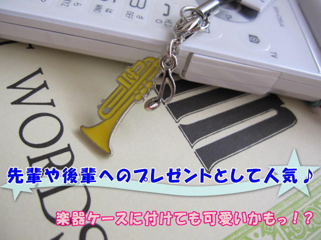 携帯ストラップ キーホルダー 部活ストラップ トランペット型 吹奏楽部 管楽器 可愛い携帯ストラップ♪ メール便対応 20点まで