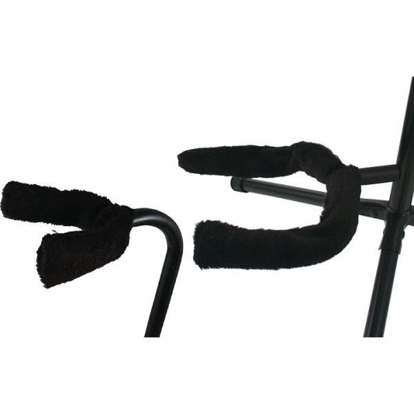Aria/アリアのギター&ベーススタンド「GS-2003B」に、楽器が触れる部分をカバー&保護してくれる「ギタースタンドカバー」が付いたお得なセットです。一般的なエレキギター、エレキベース、アコースティックギターでの使用が可能です。楽器が接触する部分にやわらかい素材を採用。従来硬いゴム製だった部分に、やわらかい素材を使用する事により、楽器角を凹ませる事が無いよう工夫が見られます。スタンドカバーは、ネックが触れる部分とボディを支える部分に、ふさふさしたカバーを取り付けることで楽器の塗装面を保護してくれます。