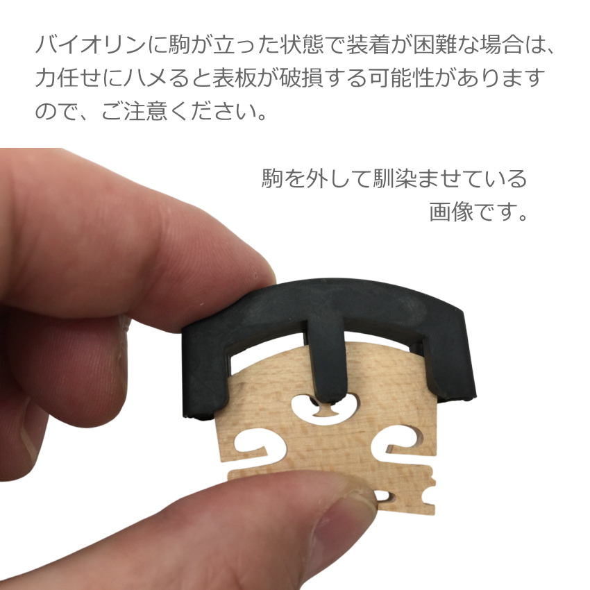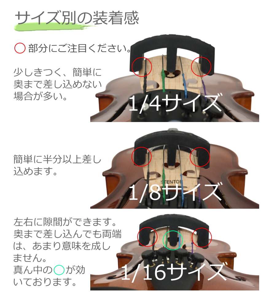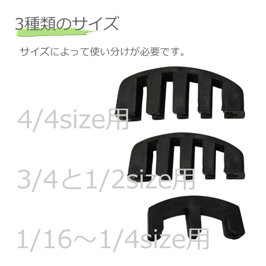 駒に対して深くミュートをはめすぎると、弦に触れて音が出なくなってしまいますのでご注意ください。