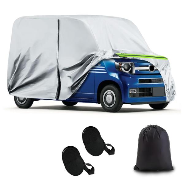 Syncnika 車カバー ホンダ N-Van 自動車カバー 車専用カバー 防水性アップ 裏起毛 防塵 UVカット 黄砂/雨雪対策 防風ロープ付き シルバー 四季対応