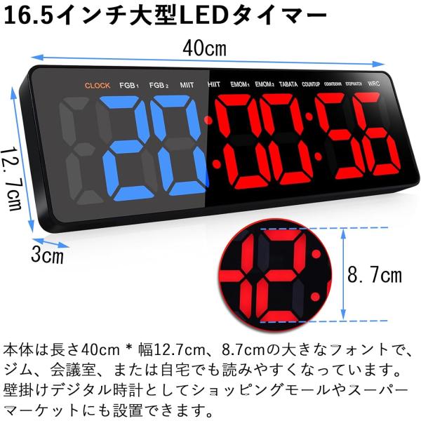 スポーツタイマー 16.5インチ 大型 インターバルタイマー リモコン付き 3.4インチ大字 ストップウォッチ 壁掛け式 トレーニング デジタイマ チャレンジ 勉強 自宅 トレーニング