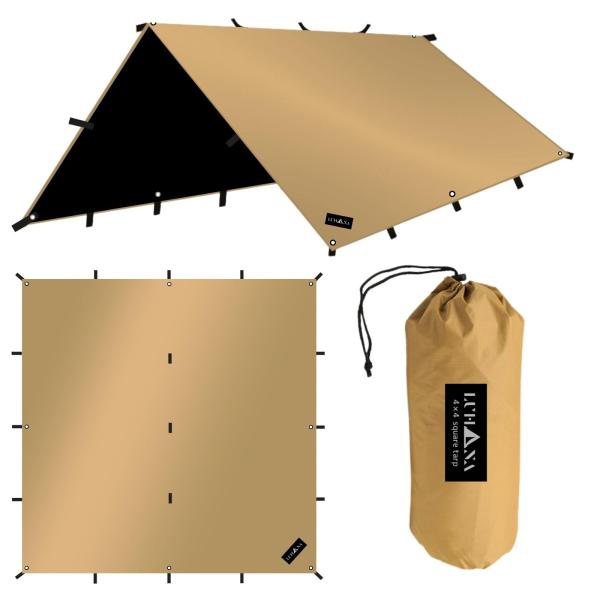 Color:サンドベージュ(難燃性ブラックコーティング )_Size:3.5mx3.5m 【日本ブランド】 LUHANA タープ 正方形 スクエア 難燃性 ポリエステル 耐水圧8000mm ブ