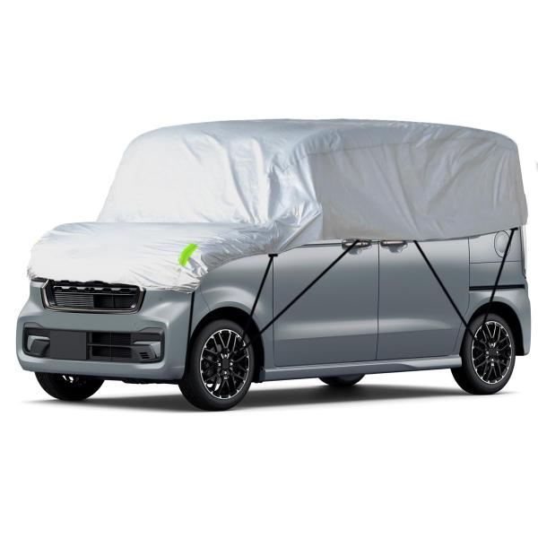 Size:軽自動車用-QZ(450cm) LINFEN 車カバー ハーフ ボディカバー カーカバー 落ち葉 鳥フン対策 裏側起毛素材で、スパンレース綿 防水防塵日焼け防止 四季対応