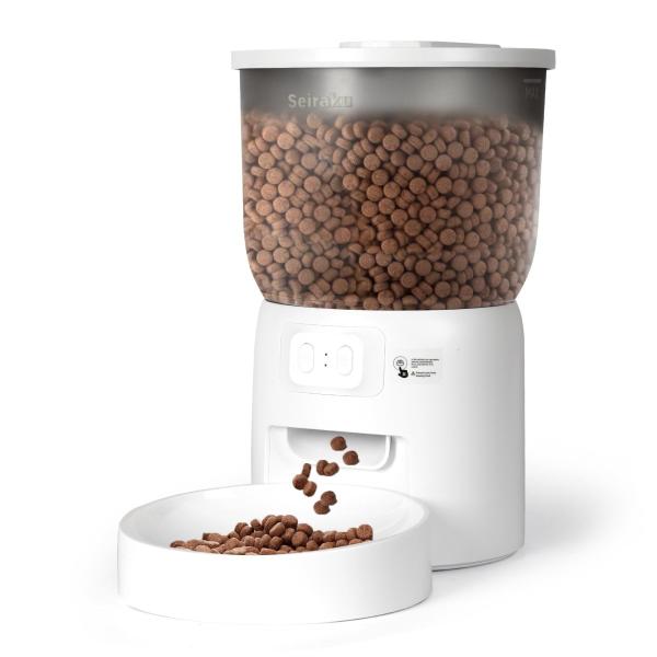 Seiraku 自動給餌器 寝返り防止 遠隔操作対応 早食い防止機能付き 猫用品 ペットフードストッカー 大容量 3L 餌皿セット 子猫・1 匹の猫対応 猫自動餌やり機 リ
