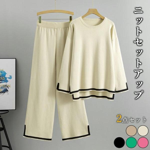 ニットセットアップ レディース 春 秋 セットアップ ニット 2点セット ニット カーディガン タンクトップ ワイドパンツ ニットセット パンツスーツ ニットカーデ