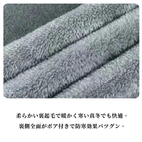 裏側全面がボア付きで防寒効果バツグン。すとんと落ちるワイドシルエットとハイウエストデザインで、スタイルアップ効果も。
