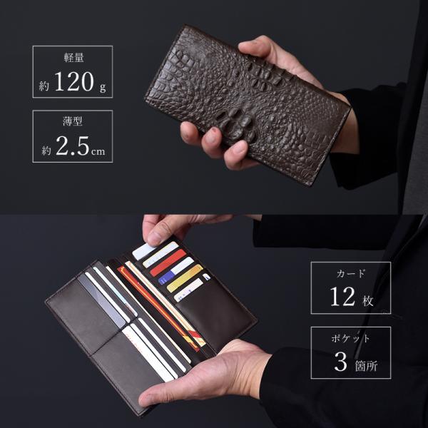 長財布 クロコダイル メンズ 札入 ワニ革 クラウンマーク 本革 一枚革 鰐革 本物 100万入る かぶせ 財布 軽量 黒 紺 茶 大容量 ウォレット 男性 ギフト 送料無料