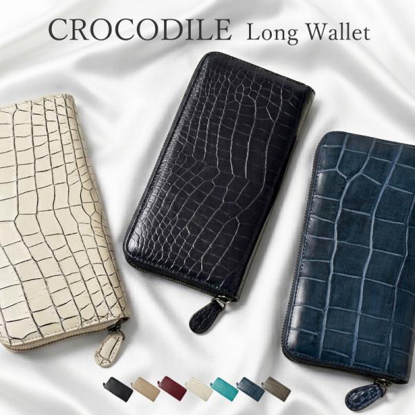 長財布 クロコダイル メンズ レディース 鰐革 ワニ革 ラウンドファスナー 財布 大容量 本革 本物 目地染め ブラック ホワイト 金運 プレセント ギフト 送料無料
