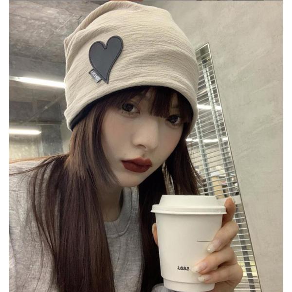 ケア帽子 ハート柄 医療用帽子 かわいい 薄いニット帽 レディース シンプル 外出用 室内帽子