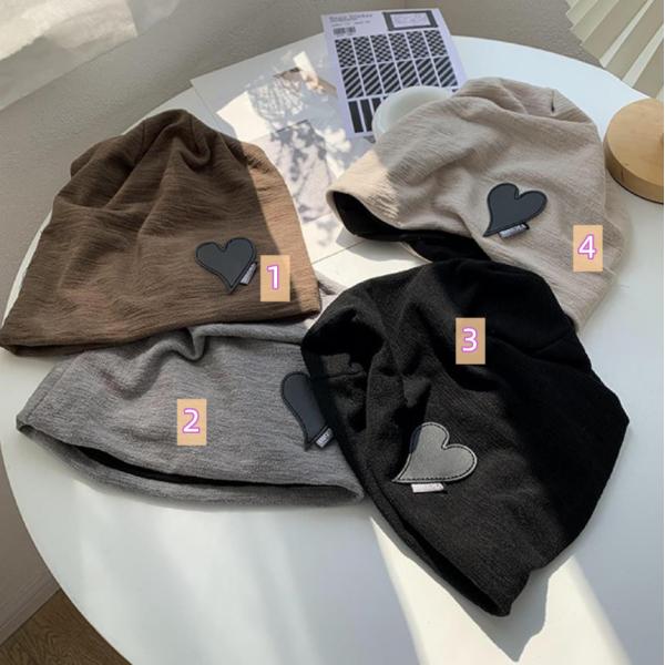 シンプル無地にハート、抗がん剤治療に綿素材の春夏秋冬ケア帽子