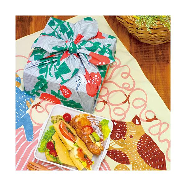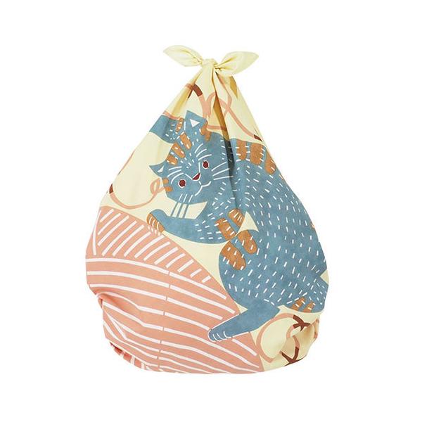 ネコと毛糸 イエロー kata kataむすび 強撥水風呂敷 70cmアクアドロップ